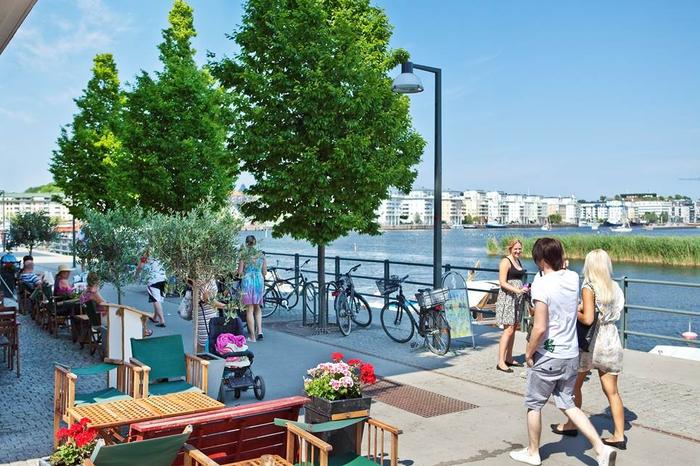 I Hammarby Sjöstad finns även all annan service som ICA, COOP, blomsterbutik, skomakeri, systembolag och även hotell såsom Park Inn by Radisson och Motel L.