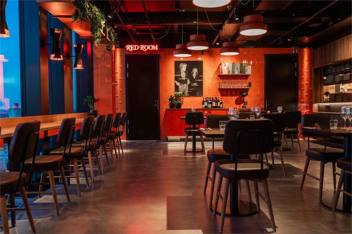 Sjöstaden Skybar, en restaurang med takterrass som drivs av krögaren Niklas Ahlbom. Dessutom finns Café NollEttan och Tastory. I entréplan finns coworking-möjligheter och extra stora mötesrum kan hyras hos Spaces.