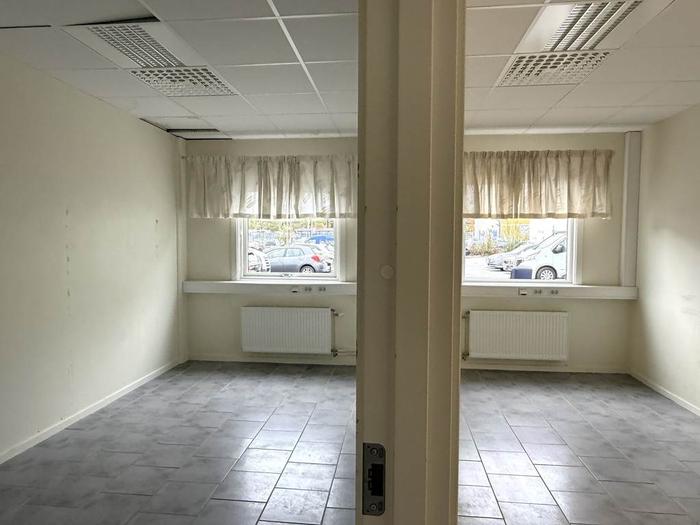 Lokalen består av två kontorsrum, personalrum med pentry, wc med dusch samt lagerdel med port. Tack vare fönster i flera väderstreck upplevs lokalen som ljus och trivsam.