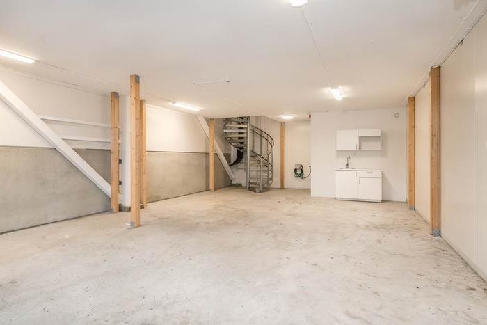 En av de stora fördelarna med denna lagerlokal är den praktiska entresolen, som ger en extra nivå för kontor, förvaring eller annan verksamhet. Entresolen maximerar användningen av golvytan och gör det möjligt att separera olika delar av verksamheten.