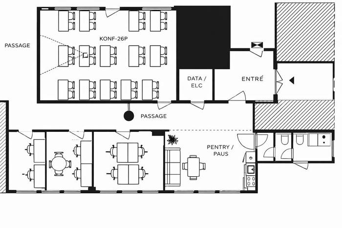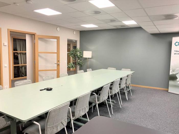 Utöver den egna kontorsytan ingår tillgång till generösa gemensamma utrymmen, däribland ett större konferensrum med plats för över 20 personer samt ytterligare mötesrum. Lokalen erbjuder även entré- och pausytor samt gemensamma toaletter, vilket bidrar till en komplett och välfungerande arbetsmiljö.