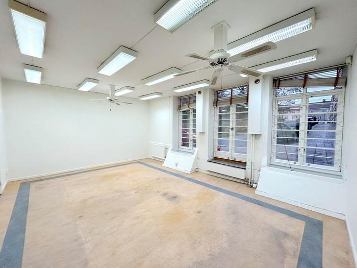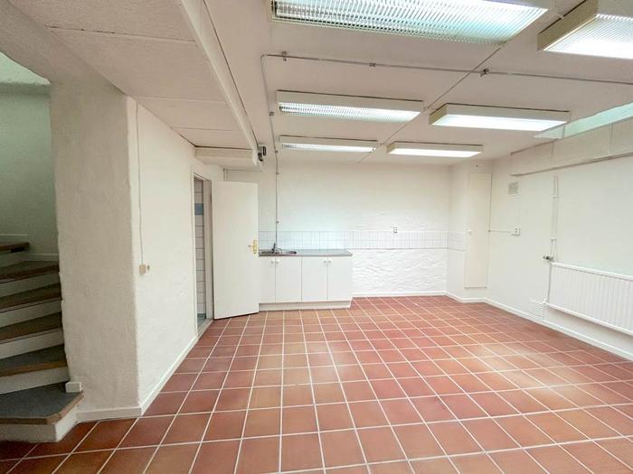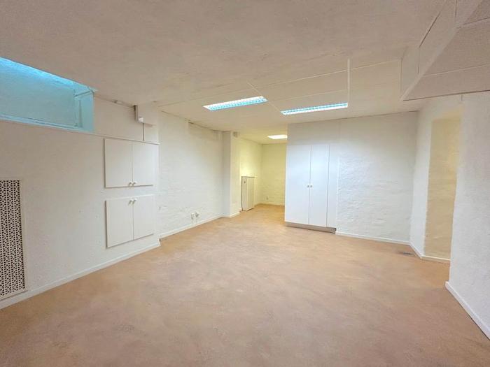 Här finns gott om plats för flera kontorsplatser, studio eller showroom, samt ett pentry och två wc. Från entréplan når du nedre plan med 61 kvm, öppna ytor som kan anpassas efter behov - perfekt för kreativ verksamhet, kontor eller verkstad.