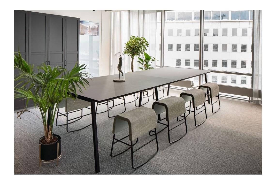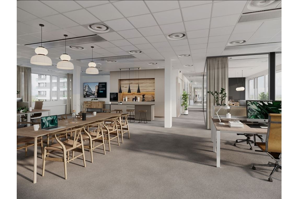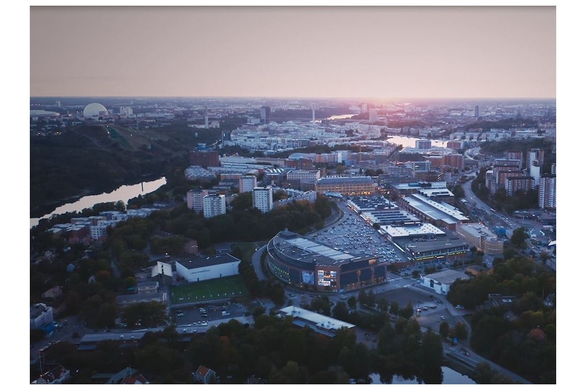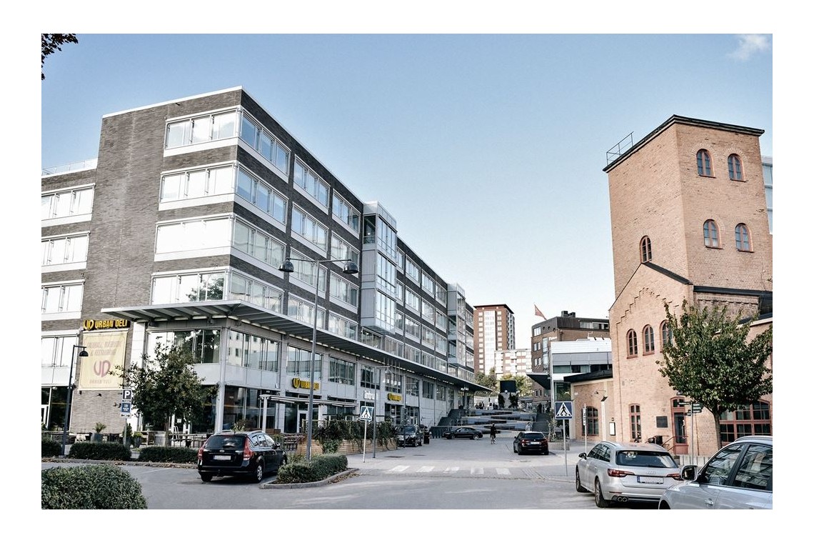 Stadsliv utanför kontoret med restauranger, shopping och parker