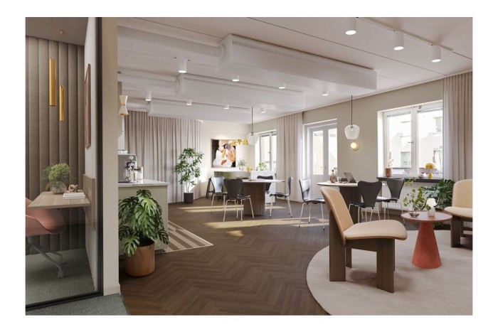 Välkommen till ett kontor på Hornsgatan 56 som kommer byggas upp med toppmoderna ytskickt, med en fin utsikt mot Mariatorget och mot den charmiga innergården. Här kombineras moderna ytskikt med praktisk funktionalitet. En egen entré från loungen kommer skapas så att du kommer direkt ut till den härliga innergården. Perfekt för både avkoppling och informella möten!