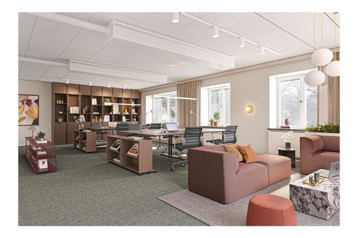 Kontorets utformning inkluderar mötesrum och en mindre lounge i anslutning till entrén, idealiskt för besökare och interna möten. Med toppmodern teknik och en smart planerad öppen planlösning kompletterad med samtals- och teamsrum, kan upp till 25 personer arbeta effektivt och bekvämt här.