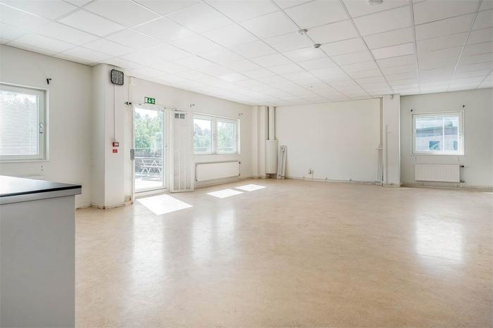 På plan ett i fastigheten finns en ledig yta om 598 kvm med en takhöjd på 3,65 meter och en golvbärighet på 520 kg/kvm. Lokalen är flexibel och lämpar sig både för lättare lagerverksamhet och kontor, med möjligheter till anpassning efter behov. Här finns kontorsrum, omklädningsrum med dusch, WC samt pentry/kök, vilket skapar en praktisk och bekväm arbetsmiljö. Vid intresse kan ytan delas upp efter önskemål.