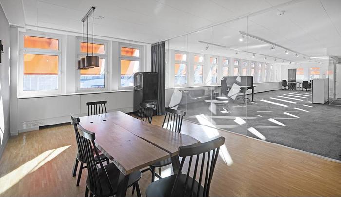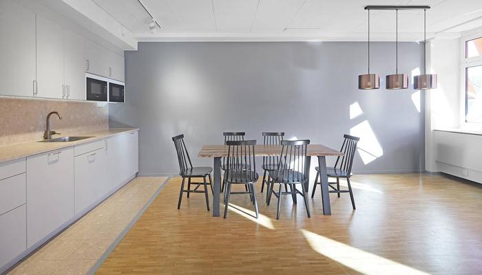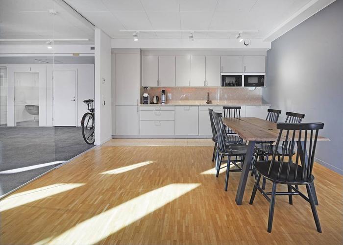 Planlösning:Lokalen är uppdelad på ett öppet kontorslandskap med två större konferensrum och två mindre mötesrum. Lokalen har även ett fräscht pentry, två WC varav en med dusch samt ett förråd.
