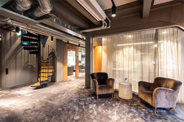 Här sitter du i ett nybyggt hus, i en miniatyrskyskrapa som ligger mitt bland allt det som Stureplan har att erbjuda - Sveriges största utbud av lunchrestauranger, caféer och butiker. Och du behöver inte gilla rosa skjortor och backslick för att jobba här. Det är ganska trevligt att bara betrakta allt och alla.