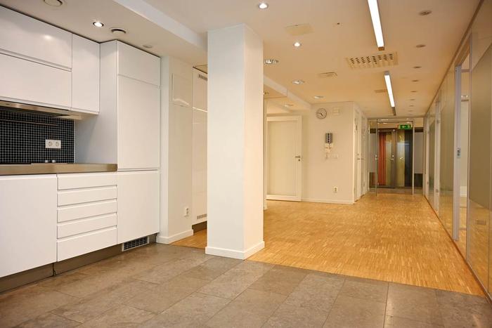 En större öppen area med plats för många arbetsplatser samt fyra rum i varierande storlekar. I mittkärnan finns en trevligt pentry med plats för sittplatser. Utöver detta finns även 2 st WC varav ena med dusch.