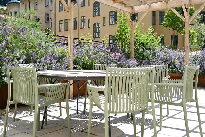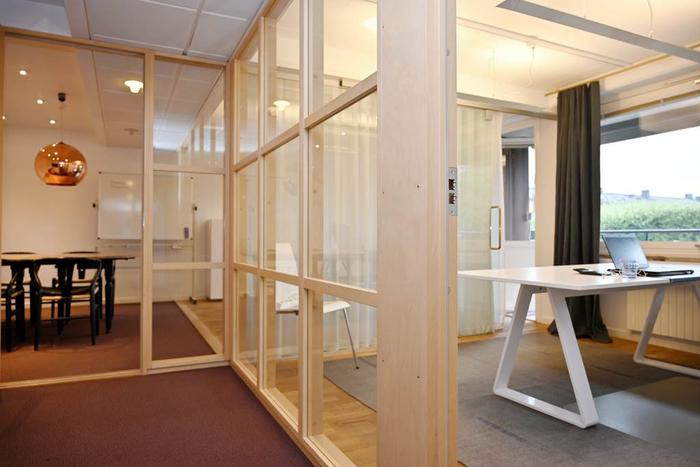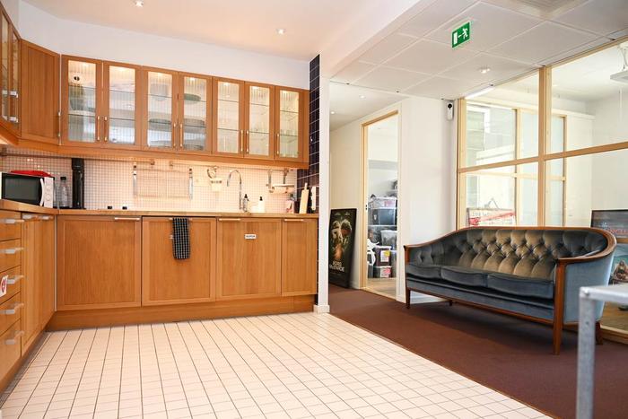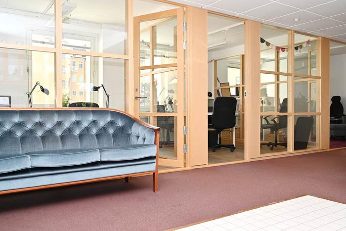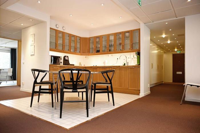 Kontor med rumsindelning. Här finns sju rum i varierande storlek, passande som kontor eller mötesrum. Fint pentry i mitten av lokalen samt en WC och en HWC med dusch. Rymlig balkong med utsikt mot lummiga Narvavägen.
