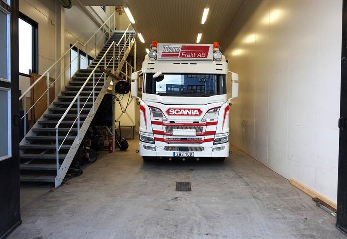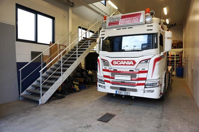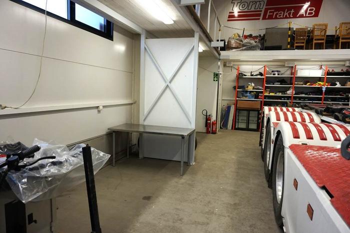 Entréplanet har en generös takhöjd om drygt 5 m. Golvet har en gemensam oljeavskiljare, vattenburet golvvärmesystem, utvändigt ett 3-fas uttag, tvättho och bänkskiva i rostfritt med inkopplat vatten, invändigt finns ett flertal eluttag monterade med bla 3-fas, 10 st takarmaturer ger ett mkt bra invändigt ljus, wc utrymme med tvättmaskin, ett mindre entresolplan för extra förvaring. Lokalen har 2 dubbelfönster mot gaveln som ger ett fint naturligt ljusinsläpp. Utvändigt finns 2 p-platser som tillhör lokalen.