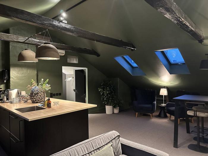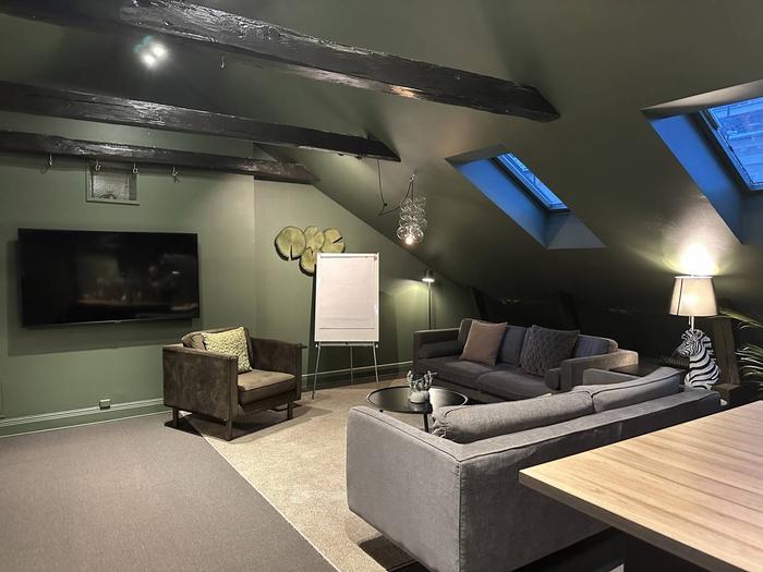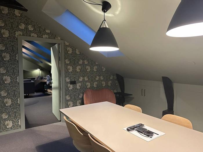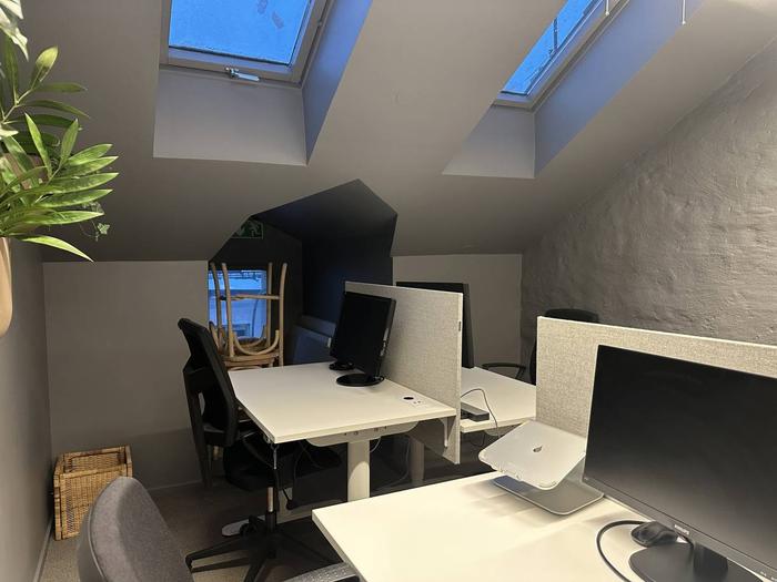 För närvarande inredd med ett stort rum innehållandes kontorslandskap för 8-10 personer och även plats för generöst konferensbord, kök med matplats och loungehörna, ett mindre konferensrum med plats för 4-8 personer, ett litet kontor samt två separata wc.