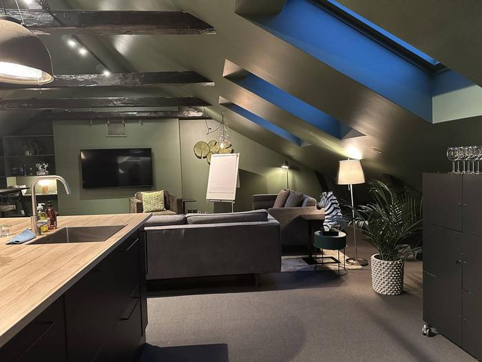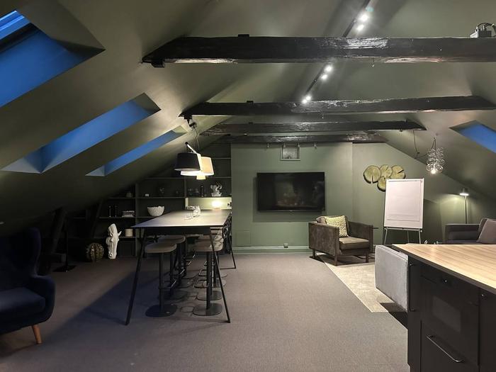Härlig kontorslokal i läcker vindsvåning om ca 115 kvm, belägen i vacker byggnad från år 1888.