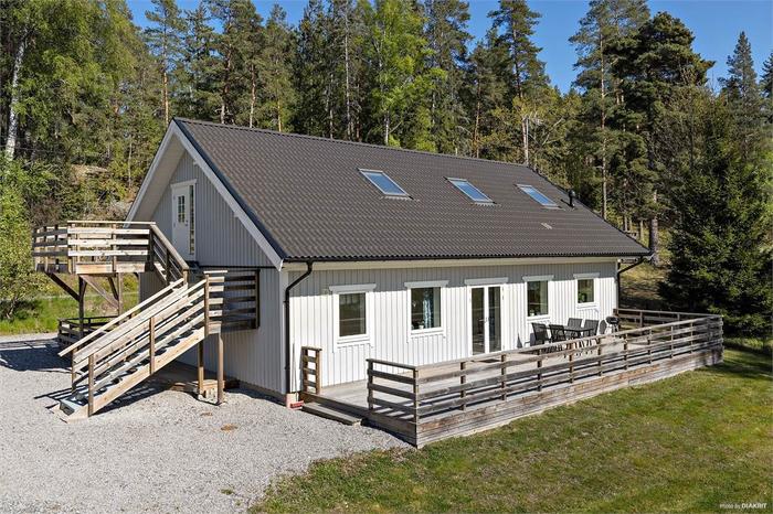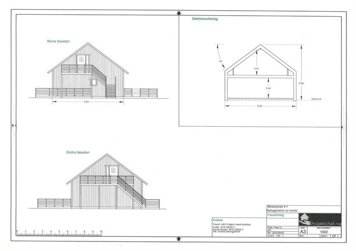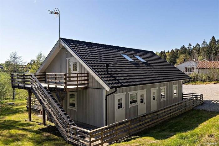 Beskrivning: Tak: sadeltak, råspont, papp, läkt och betongpannor