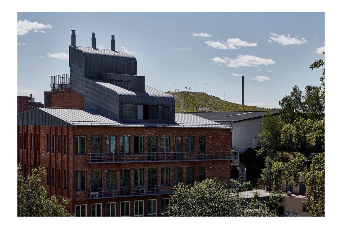 Formalinfabriken med Hammarbybacken i bakgrunden.