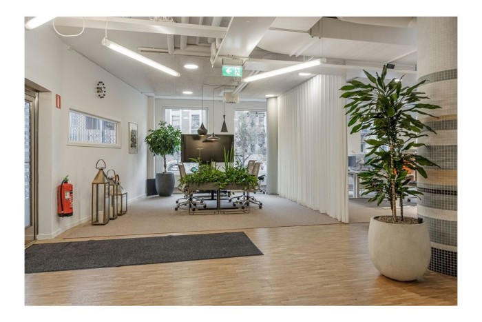 Här sitter ni i bästa läge mitt i Vasastan. Karaktäristisk kontorsyta i ett plan, med genomgående tät fönstersättning som ger mycket ljus till det öppna kontorslandskapet. Lokalen har en fin och modern standard. Genomgående synliga installationer i tak ger en fin takhöjd. Välkomponerad planlösning med öppna ytor som gör det enkelt att anpassa utifrån olika arbetssätt. Kontorslandskapen kompletteras med flertalet mindre telefon/videomötesrum som erbjuder flexibilitet under arbetsdagen. Konferensrum med stilrena glaspartier skiljer av rummen.