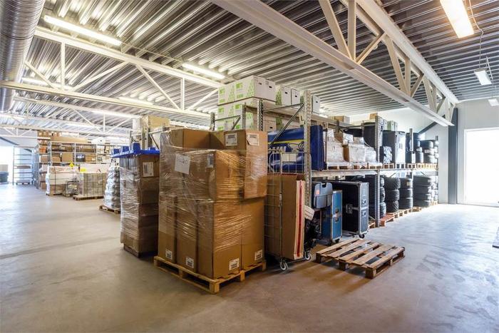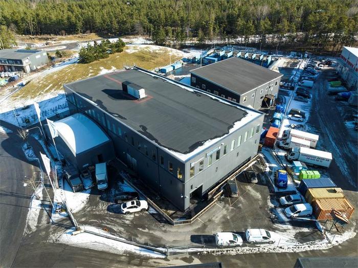 Modern miljöbyggnad med höglager, produktionsdel/ytterligare lager samt kontor.