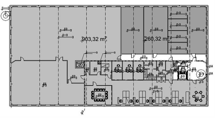 I dag är ytan fördelad på produktion ca 650 m2 med hög bärighet (takhöjd 4 m) samt modernt kontor/konferens/kök och WC-grupper (dusch) om ca 550 m2