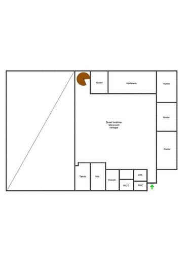 Ljusa ytor med kök, kontorsplatser för ca 10 personer samt stort konferensrum. Ytan är flexibel och kan även nyttjas som showroom/utställning eller kompletterande lager.