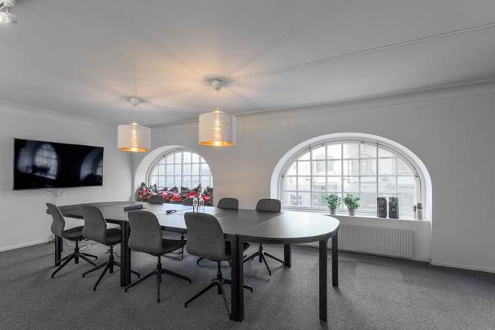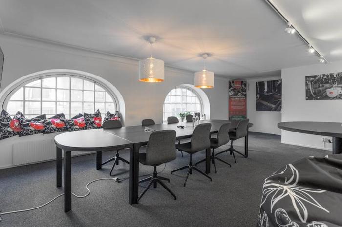 Övre planet (1 tr):Här finns ett större rum om ca 38 m² som den nuvarande hyresgästen nyttjar som mötesrum idag. Det finns även ett mindre rum om ca 13 m² som kan nyttjas som kontor eller samtalsrum samt ett utrymme där interntrappan kommer upp. Total yta på det övre våningsplanet ca 61 m².