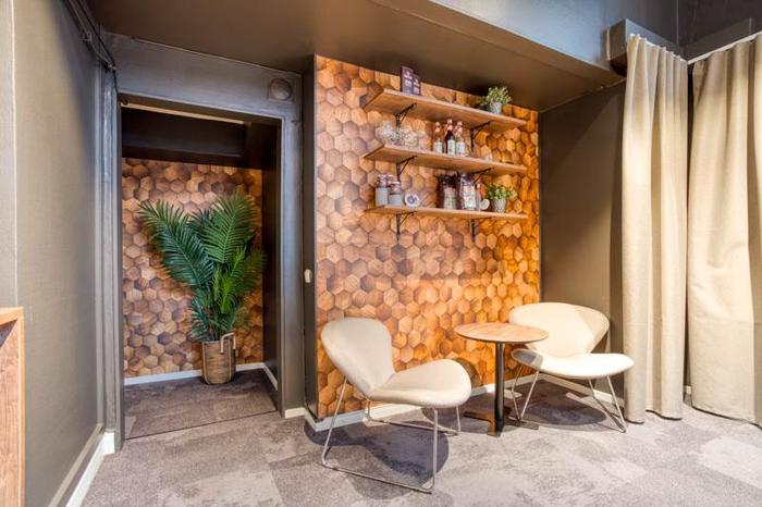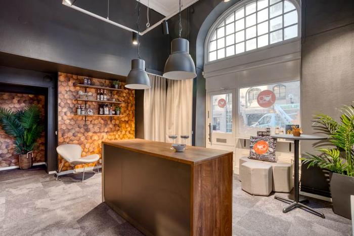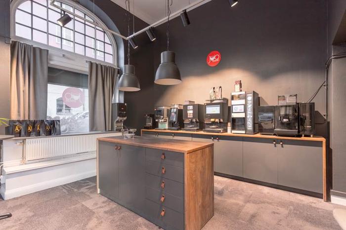 En lokal med genuin gammaldags prägel från byggnadsåren men med smakfullt nyrenoverade ytskikt.