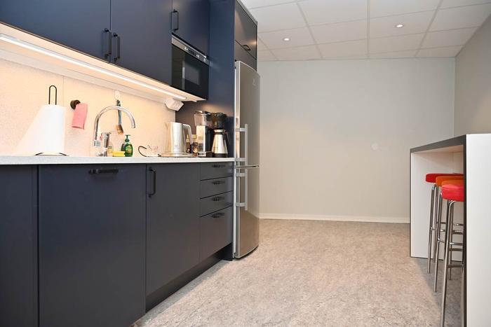 Öppen planlösning med ett rymligt konferensrum för ca 8-10 personer i direkt anslutning till entrén. I lokalen finns även två st telefon/-teamsrum, ett pentry och WC.