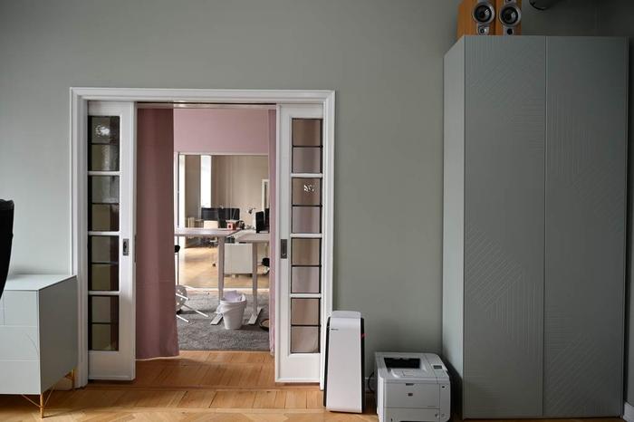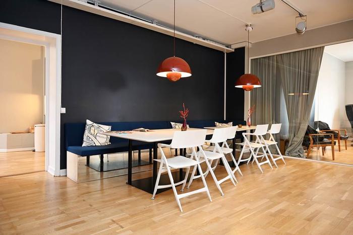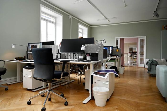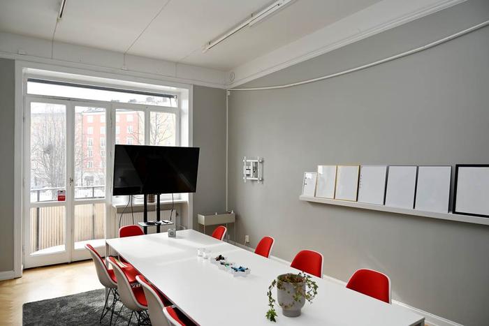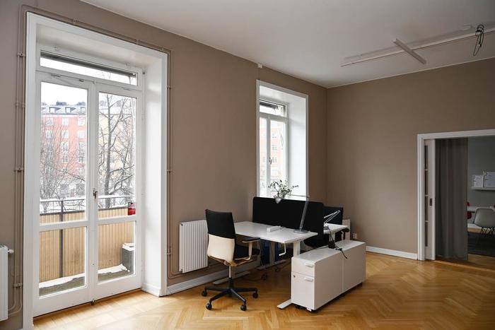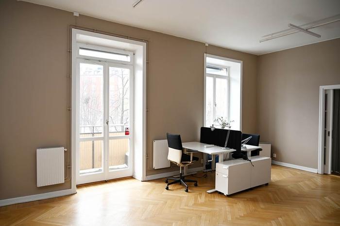 Trevligt kontor med blandad planlösning, precis intill St Eriksplan och Vasaparken. Lokalen har vacker fiskbensparkett, generös takhöjd och nyligen målade väggar i olika kulörer. Härligt ljusinsläpp från stora fönster och glasade dörrar som vetter ut mot de egna balkongerna. Balkongerna har utsikt över St Eriksplan och lummiga Vasaparken.