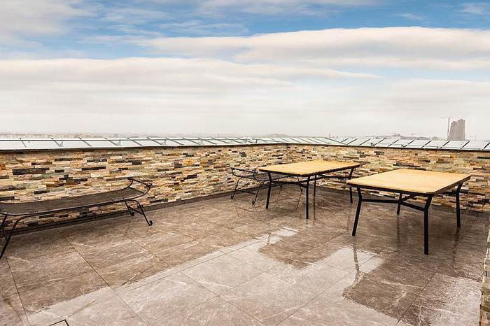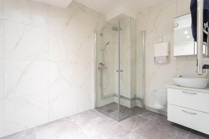 Huvudentrén har anpassats med exklusiva materialval och armaturer, pelare med gulddekorer, stuckatur samt bänkar där man kan slå sig ner. Tre hissar försörjer huset och även hisskorgarna har anpassats med exklusiva ytskikt. Cykelrum och godkänt skyddsrum finns samt cykelställ utanför huvudentrén.
