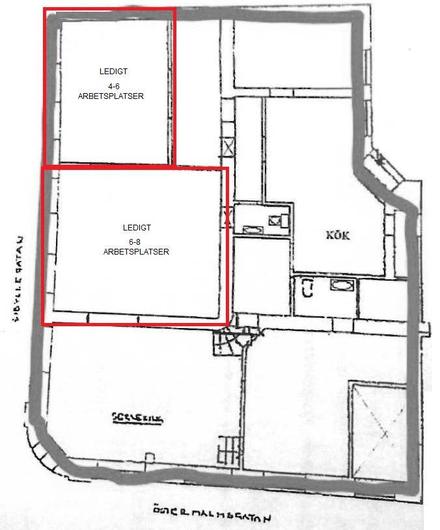 Här finns ett rum om ca 15 kvm med plats för 4-5 skrivbord. I anslutning till detta rum finns ett litet vilrum/samtalsrum samt wc. Ett rum om ca 25 kvm med plats för 4-6 skrivbord. Ett stort rum om ca 30 kvm med plats för 6-8 skrivbord.