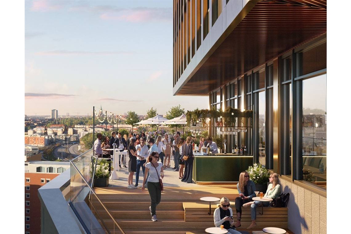 Restaurang i huset med terrass och utsikt över Stockholm