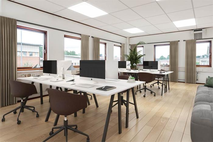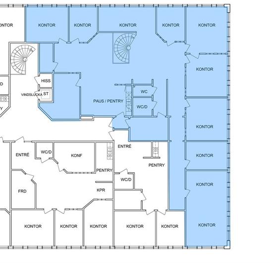 Här erbjuds en ledig kontorslokal om 304 kvm med goda möjligheter till anpassningar efter ny hyresgäst. Lokalen är belägen på plan två och nås via trapphus med hiss. Planlösningen är kontorsindelad, med flera kontorsrum i olika storlekar samt faciliteter i form av kök/pentry, dusch och WC.