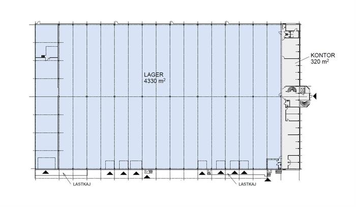 Lokalen kan nås via:2 lastkajer med 7 portar + 2 lasthus