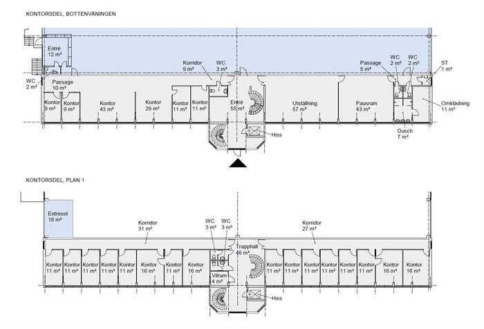 Funktionella och flexibla ytor med mötesrum,pentry, matsal, dusch, omklädningsrum och WC