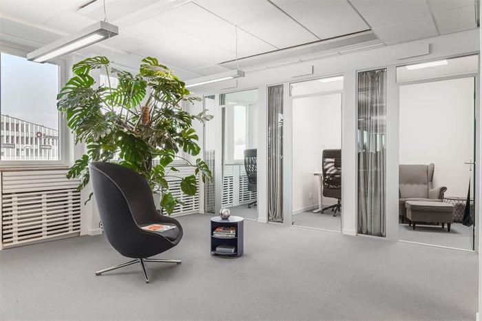På 1 tr ligger denna moderna och fina lokal med öppna arbetsytor, gott om mötesrum och en fint pentry att samlas i. I huset finns gott om parkeringsplatser och cykelparkering och omklädningsrum.