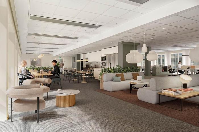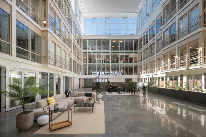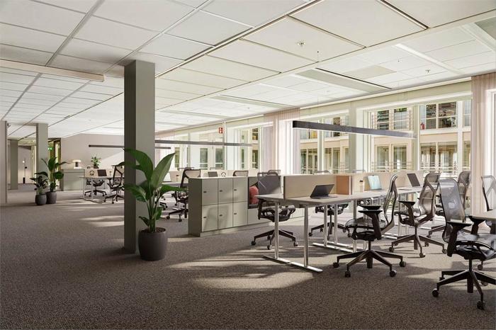 Planlösning:Nyrenoverat och modernt aktivitetsbaserat kontor. En stor ljusgård med fina umgängesytor, den naturliga mötesplatsen för hela företaget. Enkelt att anpassa för ert företags behov.