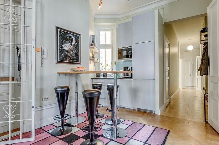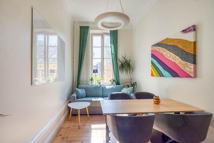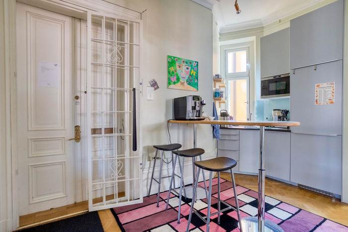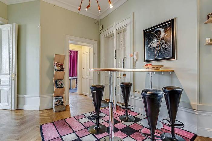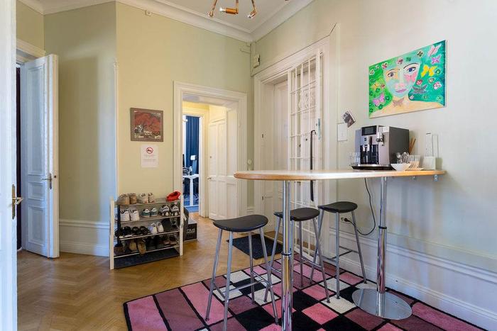 Lokalen erbjuder en härlig atmosfär med bevarade snickerier från byggnadsåren så som stuckaturer, takrosetter, spegeldörrar samt vackra högresta fönster.