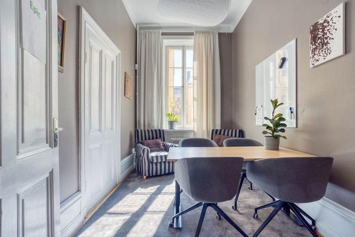 Det geografiska läget, lokalens bevarade vackra originaldetaljer sammantaget med den utmärkta planlösningen gör detta till den optimala arbetsplatsen!