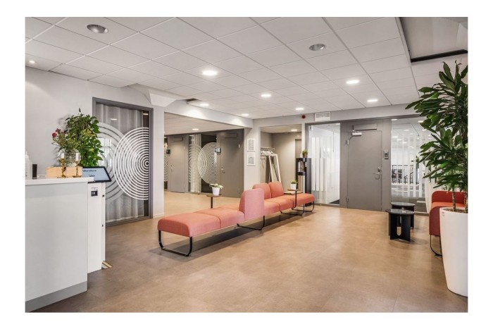 Fönstren i huset är stora och vetter ut i tre olika väderstreck, vilket ger en uppskattad arbetsmiljö. För den som har behov av praktiska funktioner går den stora lasthissen från husets lastkaj, direkt upp till lokalen. Garage finns i källaren, tvärbanan stannar utanför och därmed bjuder platsen även på ett väldigt fint skyltläge. Välkomna!