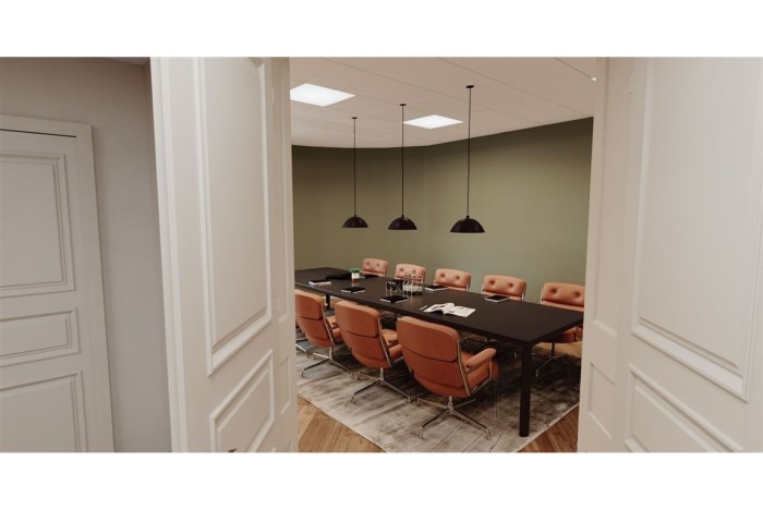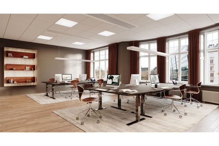 Lokalen erbjuder kontorsrum, mötesrum, lounge, kök och WC. Innergård och balkong bidrar till en ljus och trivsam arbetsmiljö.