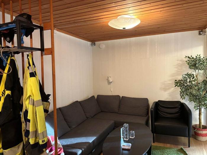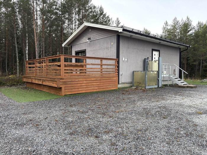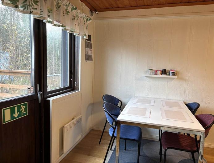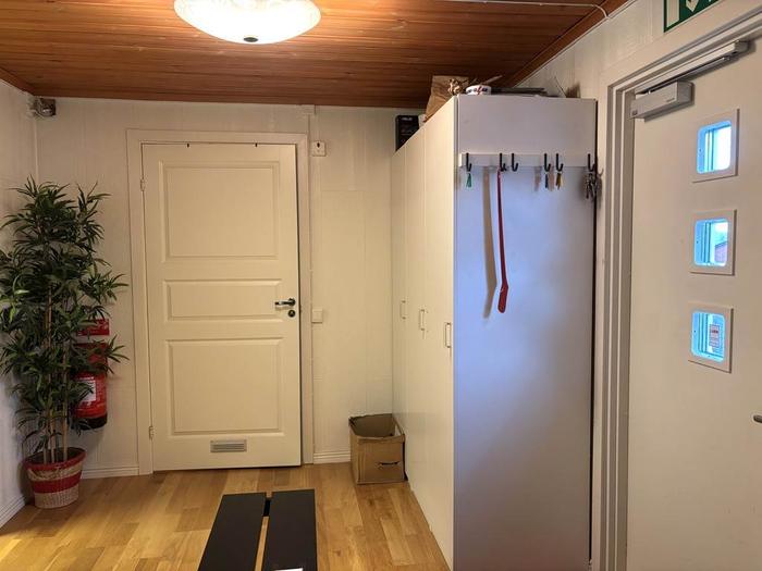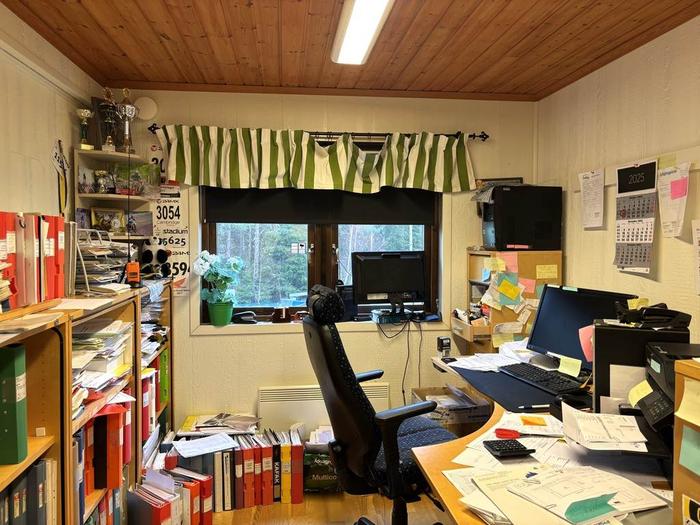 Kontorsbyggnaden består av ett kök med utgång till en trevlig uteplats, wc/dusch och tvättstuga med klinkergolv och kaklade väggar, kontorsrum, ett vardagsrum/personalrum samt en bra hall med plats för ytterkläder och skor.