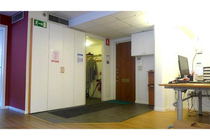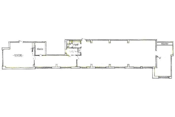 Lokalen har idag en öppen planlösning som på ritningen. Pentry med matplats finns placerat längst in i lokalen och wc i nära anslutning till entrén. Lokalen är idag stomren och det kommer att vara möjligt att få påverka både ytskikt och planlösning. I det fall att kontorsrum önskas så går det att bygga, men då det är en fördyrande anpassning kommer troligtvis hyresnivån att bli något högre än om lokalen hyrs med en öppen planlösning.