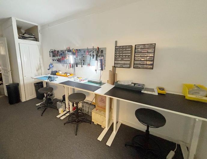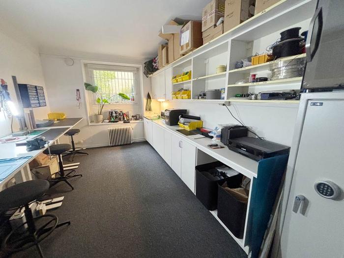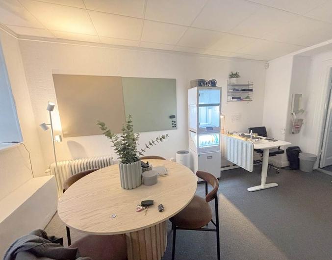 Lokalen består av ett inbjudande entrérum och ett lugnt, avskilt rum mot gården med fönster - perfekt som kontor eller showroom där du kan arbeta ostört och ta emot besökare i en inspirerande miljö.