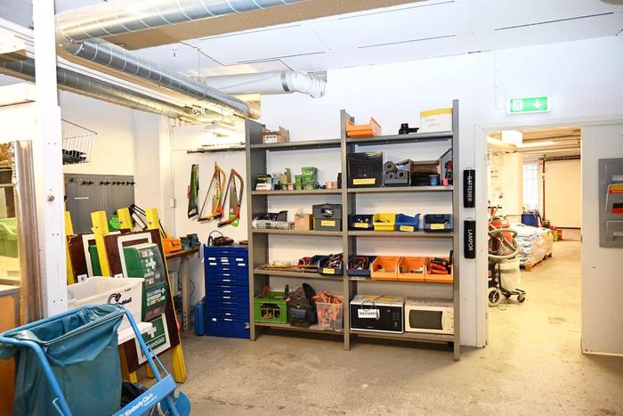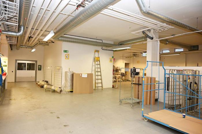 Kontor/lager/produktion med blandad planlösning. Här finns många WC, duschar/omklädning samt ett stort pentry med plats för paus.