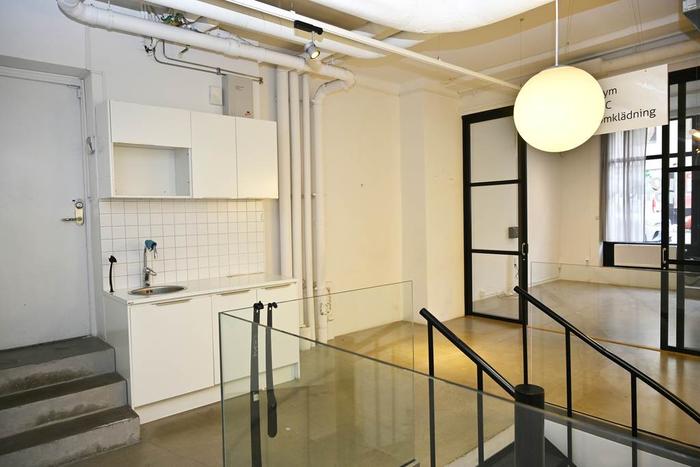 Unik lokal med många möjligheter. Lokalen är i två plan med interntrappa och egen entré från gatan. Generös takhöjd om ca 3,2 m i plan BV och upp till ca 2,8 m i plan KV.