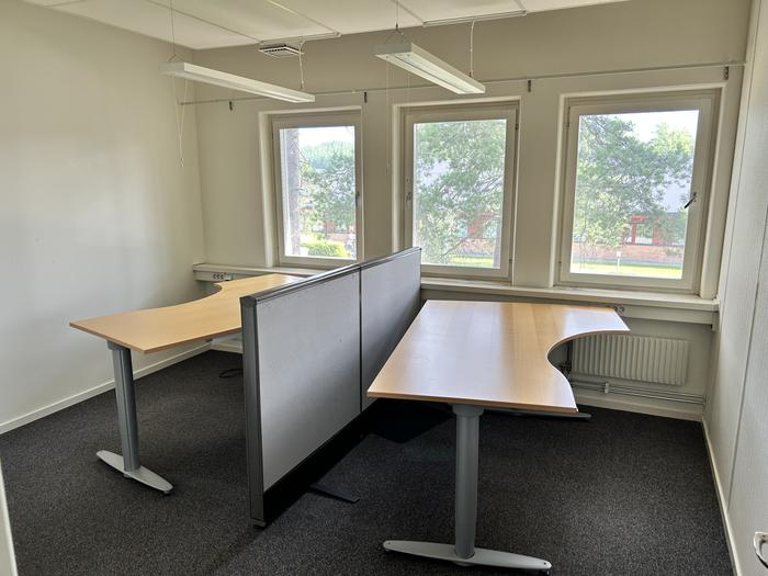 Här finns möjligheten att hyra hela kontorsbyggnaden alternativt delar av den. Bra planlösning med både mindre kontor och öppna planlösningar i två plan, med konferensrum högst upp.