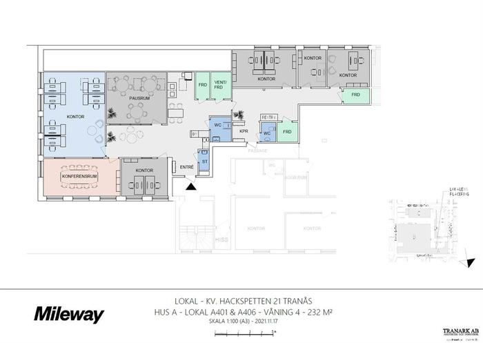 Illustrationsskiss Lokal A401 & A406 Våning 4 Hus A.pdfKontor, 232 m2, Tranås