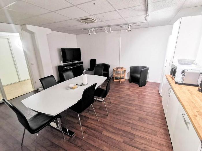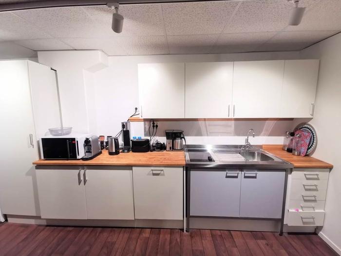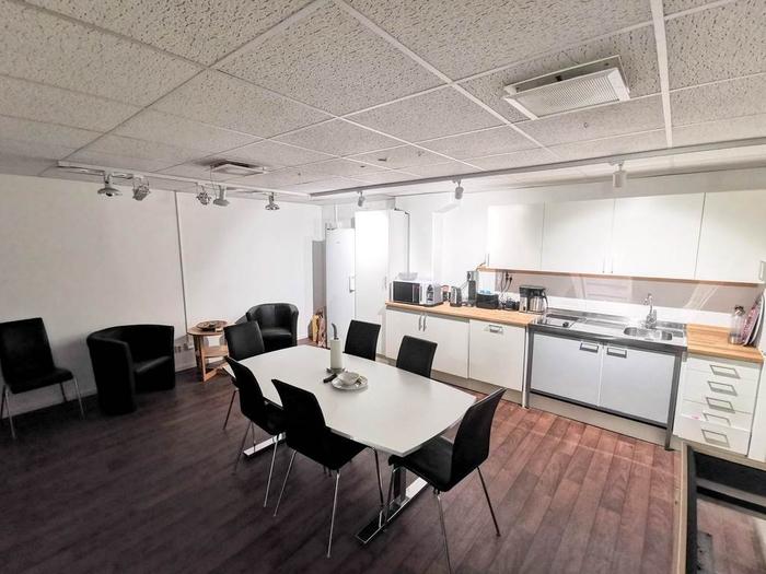 En av de framstående funktionerna i denna kontorslokal är det rymliga köket. Köket fungerar som en central plats för pauser och gemenskap. Med moderna apparater och tillräckligt med yta för måltidsintag erbjuder köket en bekväm och användbar plats för de anställda att njuta av.