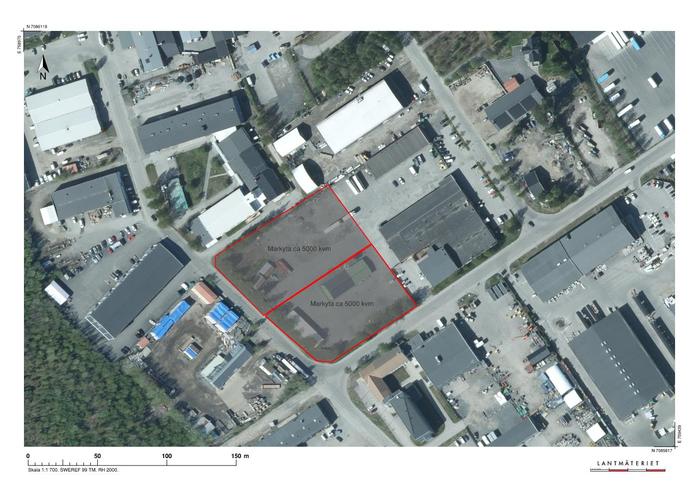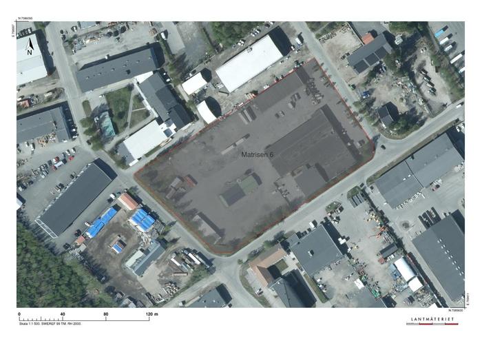 Tomten är på ca 10000 kvm och är till stora delar hårdgjord. På fastigheten finns idag mindre verkstad, kallförråd och skärmtak. Fastigheten kan eventuellt delas upp och exploateras i överenskommelse med dig som blivande hyresgäst, se idéskiss. Kanske behöver du bara markytor eller så önskar du etablera dig med mark och byggnad, vi är öppna för diskusson.