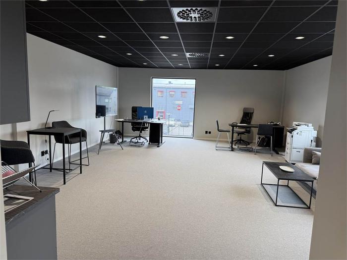 En öppen och modern kontorsyta om ca. 69 kvm med ett utmärkt skyltläge. Planlösningen erbjuder en öppen yta med plats för 4-6 arbetsplatser, social del med matgrupp och loungemöbler, modernt fullutrustat kök, WC samt ett mindre förråd. Lokalen har genomgående mycket smakfull färgsättning med toppmoderna lösningar och flexibilitet.