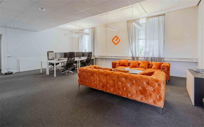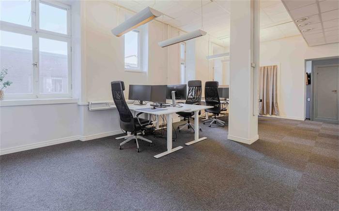 Ett modernt kontor om 129 kvm med effektiva ytor. Det är ett öppet kontorslandskap med plats för flera arbetsplatser, ett konferensrum samt ett lunchrum med pentry. Det är många fönster som ger ett rikligt ljusinsläpp i hela lokalen.